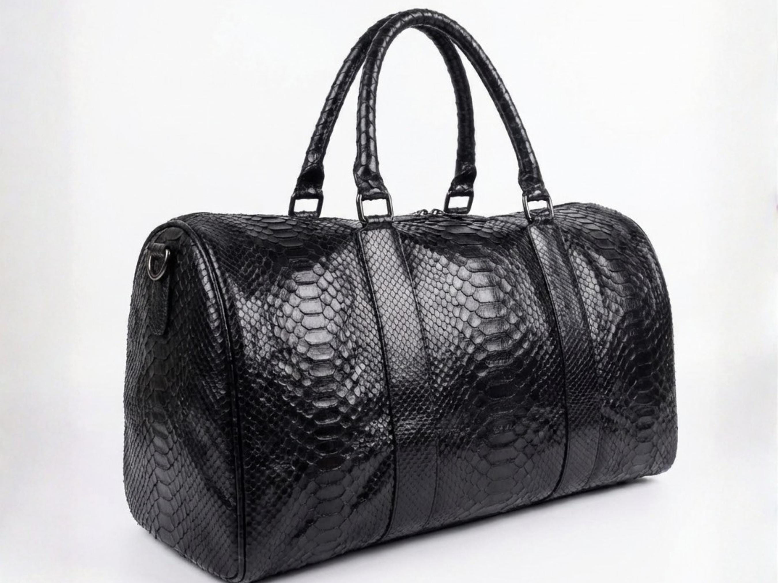 The deep classic black finish enhances the natural python scale texture, delivering a sleek, sophisticated, and timeless look suitable for business trips, weekend escapes, or elevated daily use.