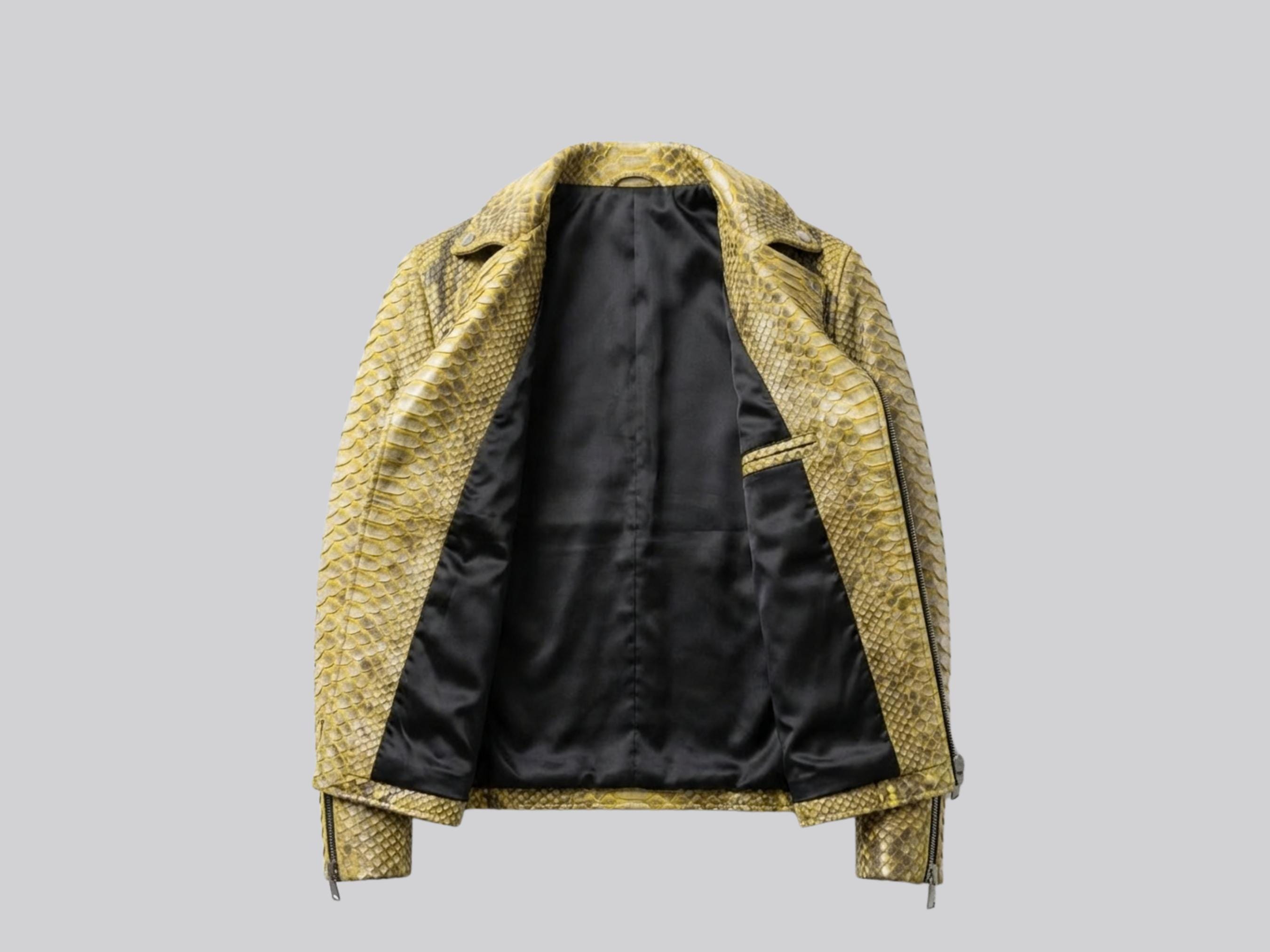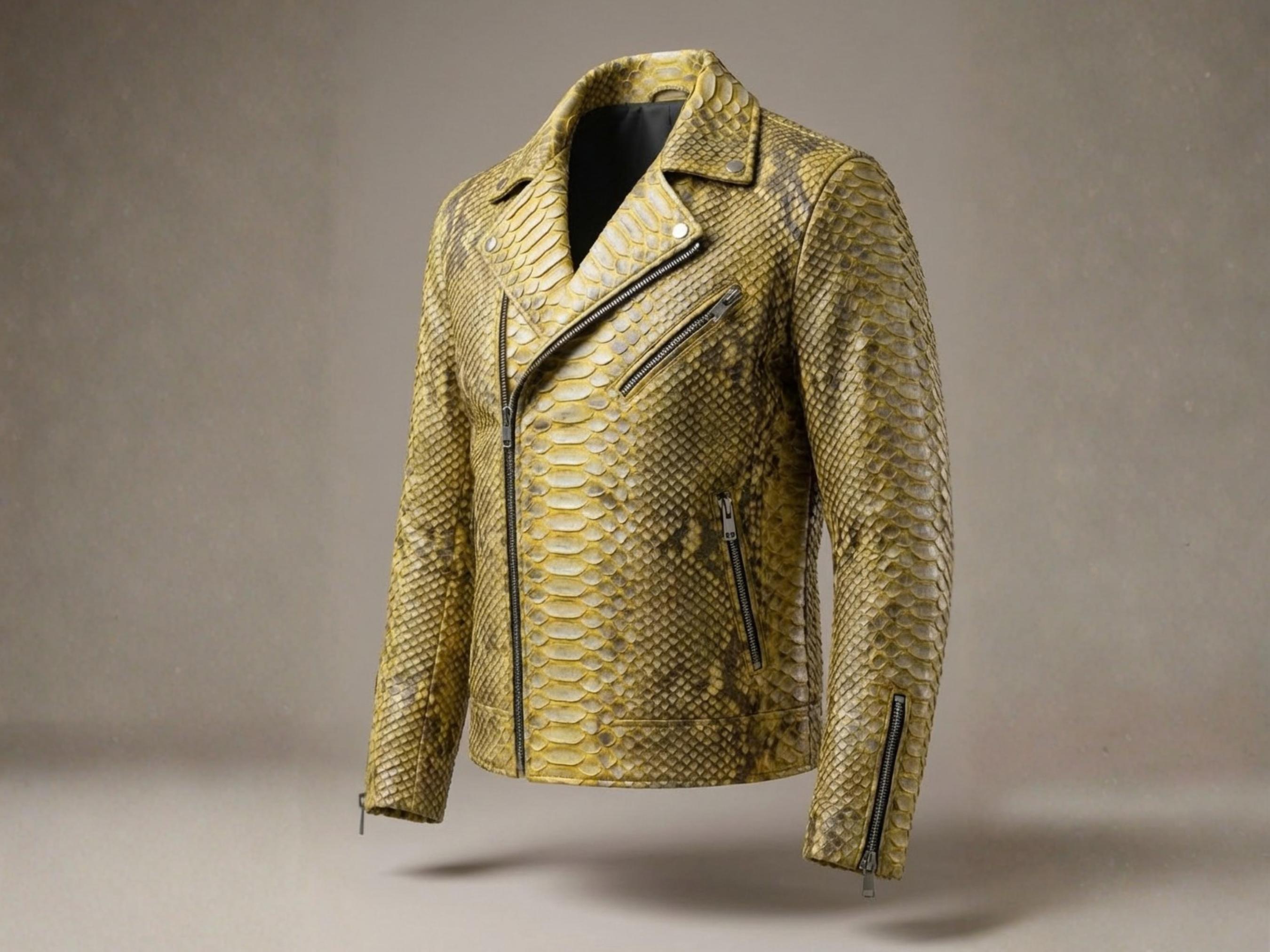 Each jacket is meticulously handmade, highlighting the natural beauty of python scales. The organic pattern ensures that no two pieces are identical, making your jacket truly one of a kind.